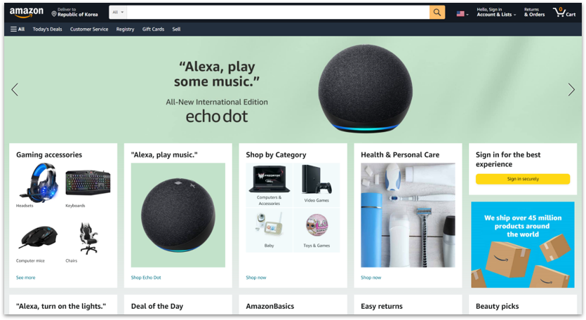 아마존은 각 사용자의 구매 이력, 검색 패턴, 장바구니 데이터를 분석하여 개인별로 다른 상품 진열 방식과 가격 정책을 적용하고 있습니다.