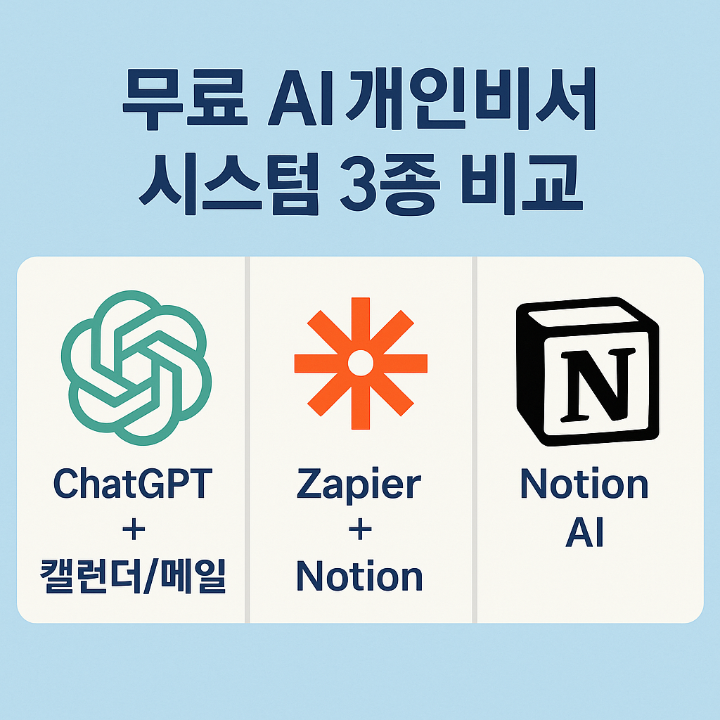 무료로 만드는 AI 개인비서 시스템 3종 비교 (GPT, Zapier, Notion 기반): 코딩 없이도 가능한 자동화 비서 만들기